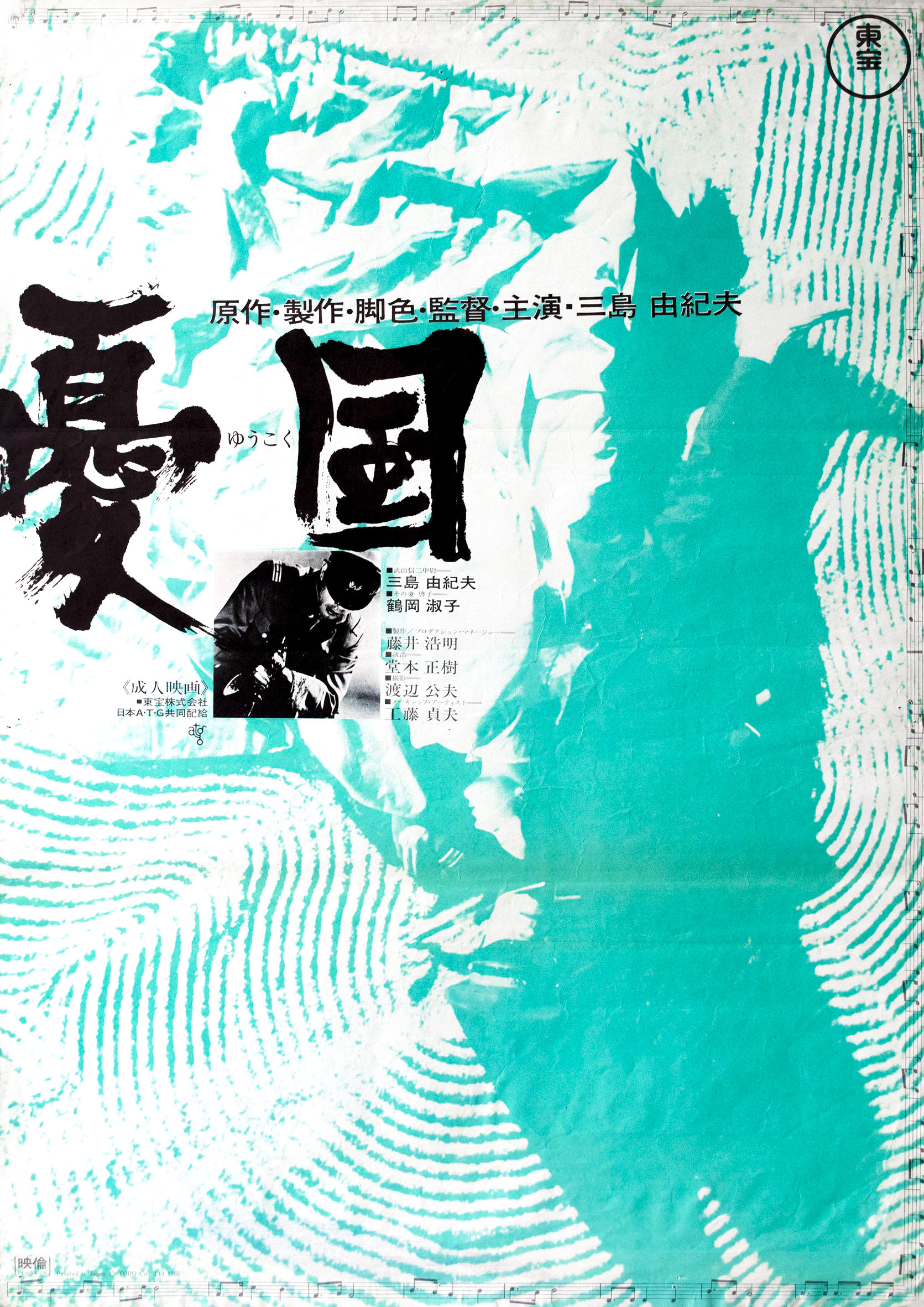 日本の伝統的様式美にのっとった能舞台に見立ててつくられた美術セット、艶かしい愛の交歓シーン、そしてあまりにもリアルな切腹シーン...全編セリフなし、ワーグナーの音楽にのせ、愛と死が緻密に描かれる。三島由紀夫の美学が全編に溢れるアート・ムービー。