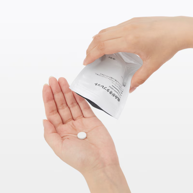 今回購入して持って行ったモノはこちらですが、内容成分まるっきり同じモノが、何と!無印でも「歯磨きタブレット」として販売されておりました。