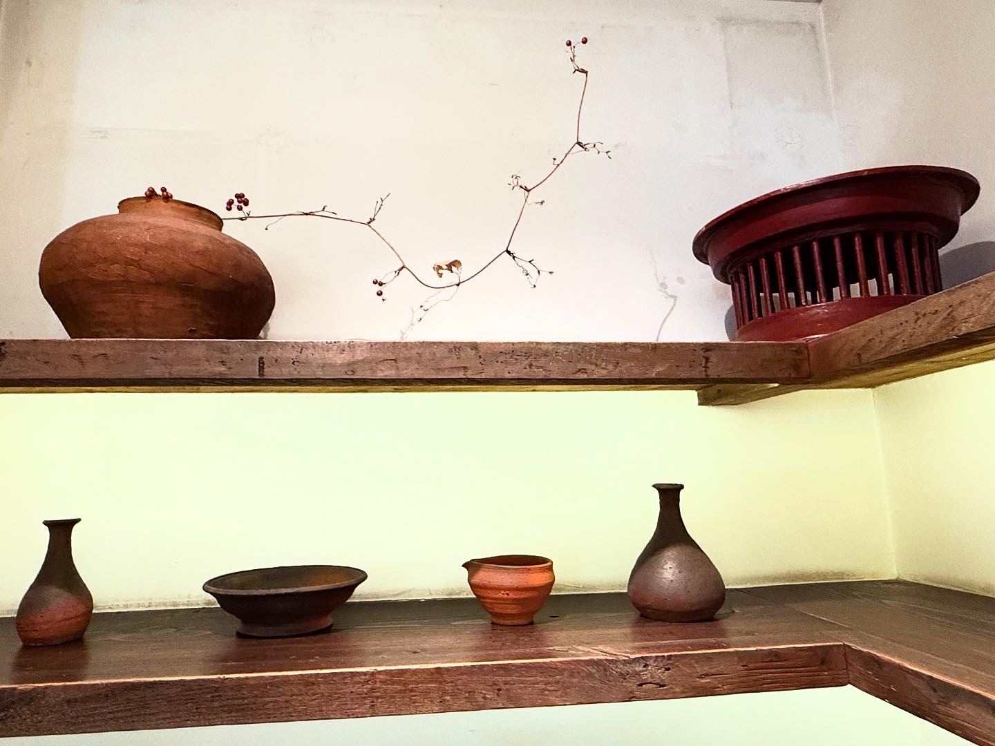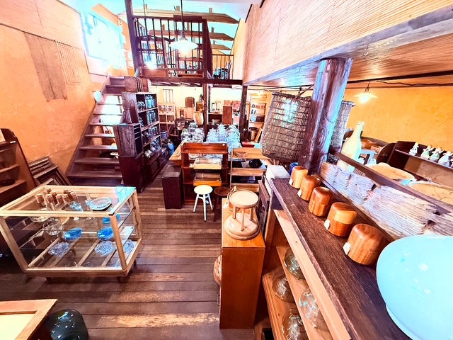 気に入った店に入ると、棚の奥や窓辺に、ゆらぎの曲線を描くガラス瓶──まるで時間の波を封じたかのように、光を柔らかく歪ませている。