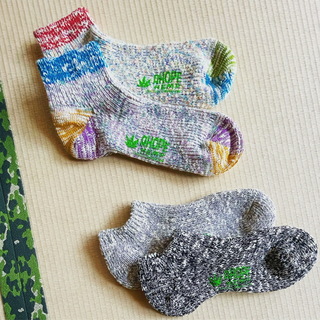 靴下の産地、奈良県で生産。 ビンテージマシンでしか作れない極太麻糸を使用した靴下。1日生産量が1台の機械で40枚という非効率的な作り方をしている。 HEMPの糸を使うことにより、夏は涼しく(吸水性が高い)、冬は温かい(保温性が高い)、抗菌防臭性効果で一年中快適。