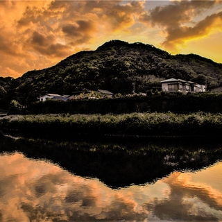 朝の風景の中で、川面に波が立たず、無風の状態で、いわゆる「鏡面現象」と呼ばれることが起きます。