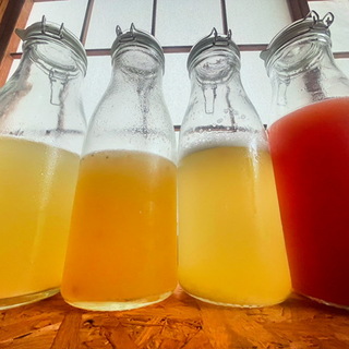 そのうちのひとつ〜砂糖使わず、野菜や果物、そして水のみで発酵させて作るジュース、いろいろ、試しながら、楽しみながらやっています。