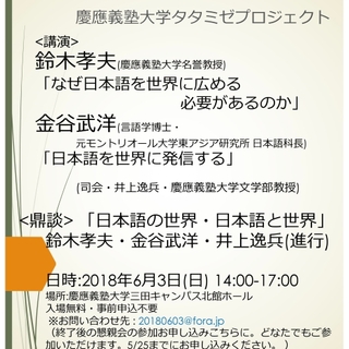 EVENT2018.05.18 ツイート 『慶應義塾大学タタミゼプロジェクト講演会』慶應校内告知ポスター 井上先生より送られてきました。 6月3日お待ちしております。 なお懇親会は今月25日までに事前申し込みして下さい。しょうさいはこちらに。 ALL NEWS