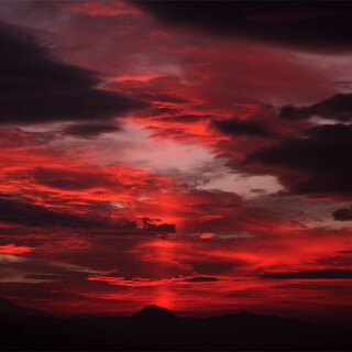 真っ赤な空に白い影